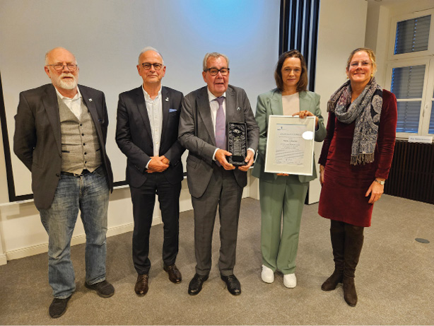 Abb. 1: Übergabe des Journalistenpreis 2025, v.l.n.r.: Dr. J.-A. Rüggeberg, Dr. P. Kalbe, Prof. Dr. Dr. h.c. H.-J. Meyer, T. Mischke, Dr. F. Burgdorf